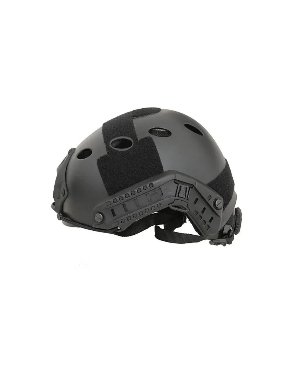 El casco de tipo "PJ" fabricado por Emerson Gear resulta una de las mejores opciones para los airsofters que quieren disfrutar de comodidad, posibilidades de configuración y una magnifica relación calidad/precio. En las monturas laterales podemos insertar adaptadores "Picatinny" para usar todo tipo de accesorios como linternas, cámaras o láseres. Están preparados para montar auriculares así como otros accesorios sin entorpecer la experiencia. Podemos montar máscaras de protección, correas elásticas, visores nocturnos, etc.