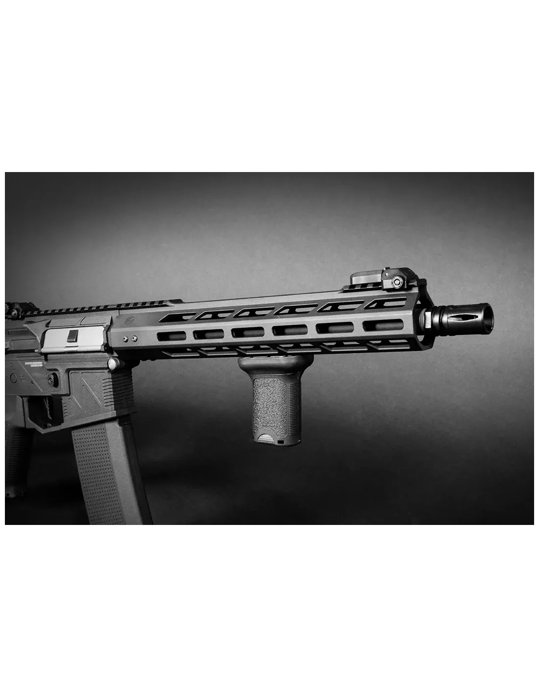 Con su cuerpo de aluminio CNC y culata ajustable, este fusil posee una resistencia y durabilidad sobresalientes, garantizando que pueda resistir las condiciones más difíciles en el campo de juego sin sacrificar su funcionamiento. Su longitud de 805 mm y su peso de 2.7 kg lo hacen versátil y fácil de manejar.
