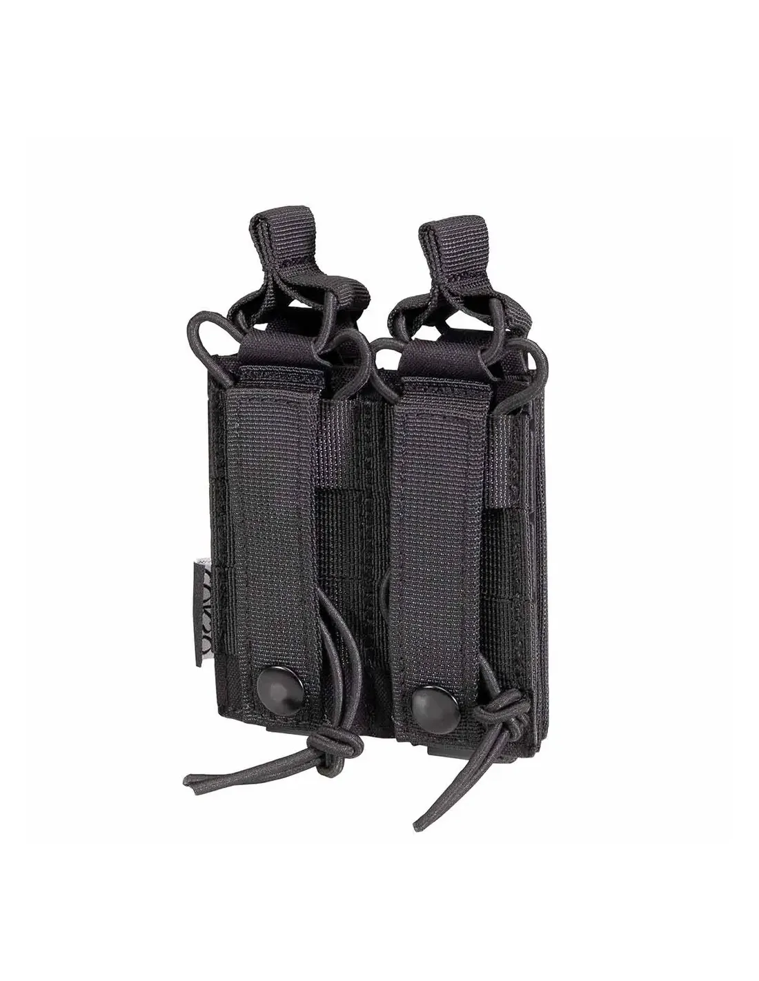 El pouch fue diseñado mediante le novedoso sistema Molle con corte laser, que aparte de poseer una estética moderna y muy atractiva, este sistema se caracteriza por proporcionar una sujeción estable y muy seguro en una gran cantidad de prendas compatibles con este sistema, para una mayor firmeza se recomienda un entrelazado cuidadoso para asegurar la sujeción. . En la parte superior contamos con el sienta estándar de cinta elástica, que provee una sujeción fiable mientras que a su vez nos permite una manipulación cómoda enfocada en la extracción rápida de cargador.